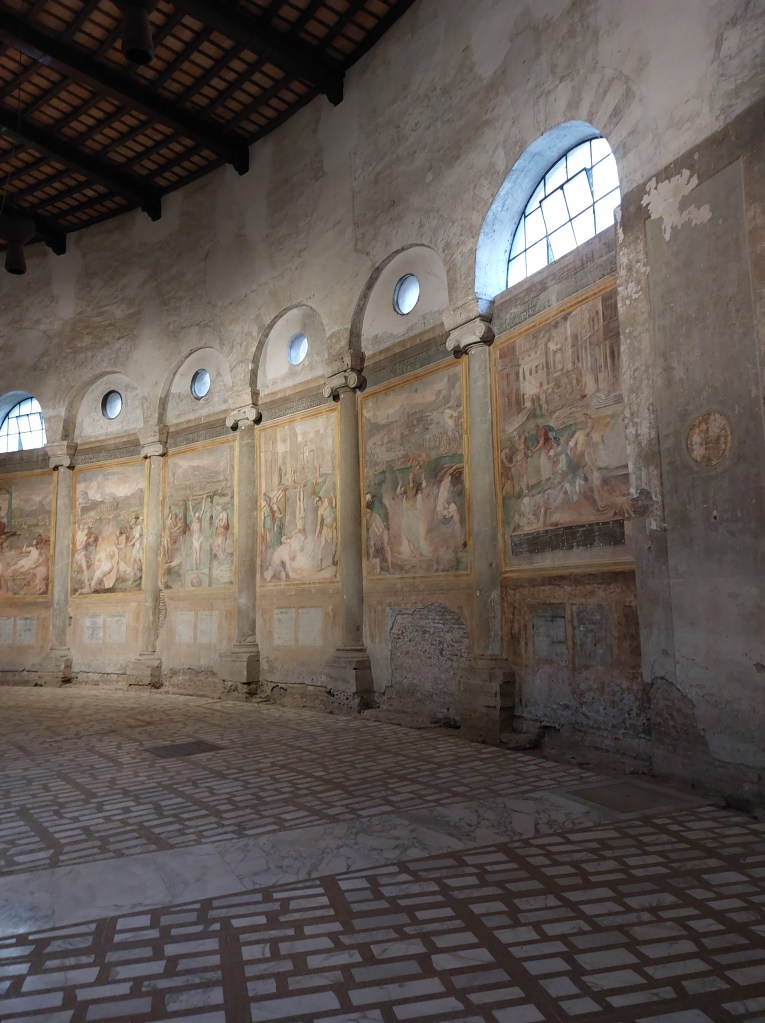 There are many beautiful churches in Rome, the city is full of them, but there is one in particular that sticks in my memory. It’s time for another *Roman Recommendation*: the Basilica dei Santo Stefano Rotondo. This church is famous for its frescos, and rightly so. The wall paintings focus on martyrdom, illustrating the preferred method for executing Christians during the reigns of different Roman emperors right up to Constantine. These poignant, powerful images provide a fascinating opportunity to engage with some of the different chapters in the tale of the Eternal City.